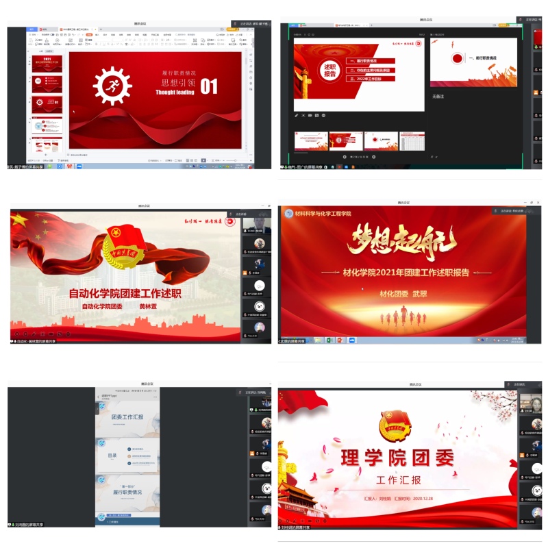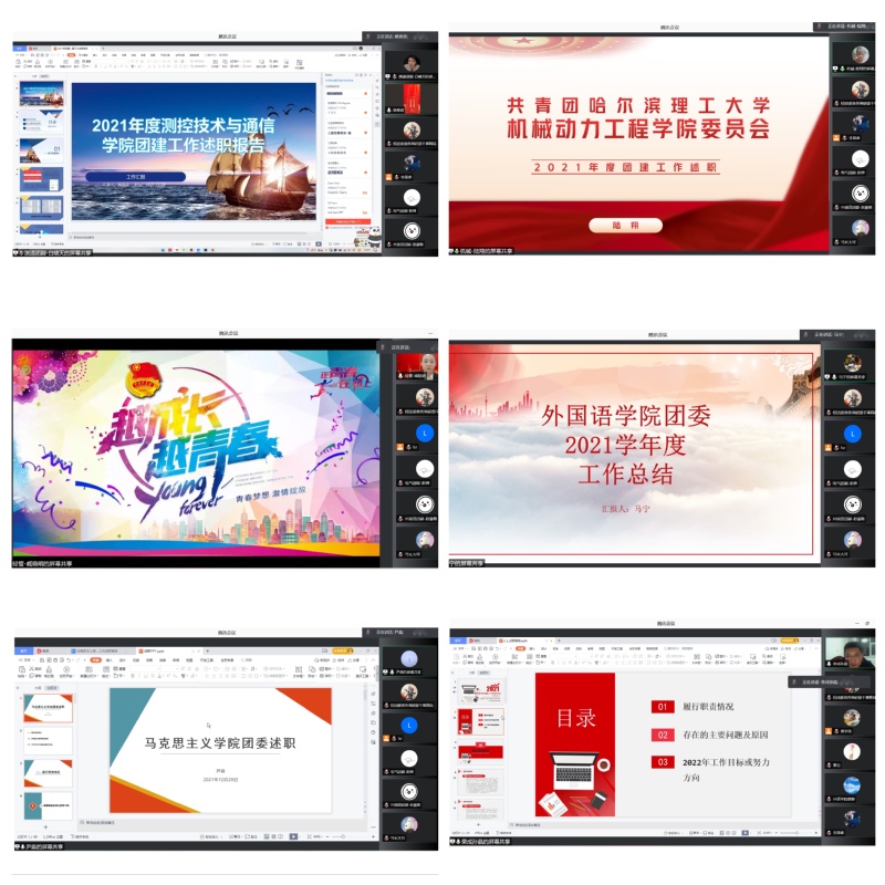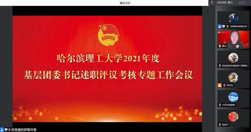 为进一步加强基层团组织建设,深化我校共青团改革,落实从严治团要求。2021年12月28日晚,我校2021年度基层团委书记述职评议会于线上举行,党委学生工作部部长戴湘竹、党委学生工作部副部长田海燕、党委学生工作部副部长谭世信、学生工作部副部长兼校团委副书记任佳伟、校团委副书记曹石、各学院主管学生工作党委副书记、各学院团委书记及30余名青年学生代表参加本次会议。会议由校团委组织建设部部长张奇主持。