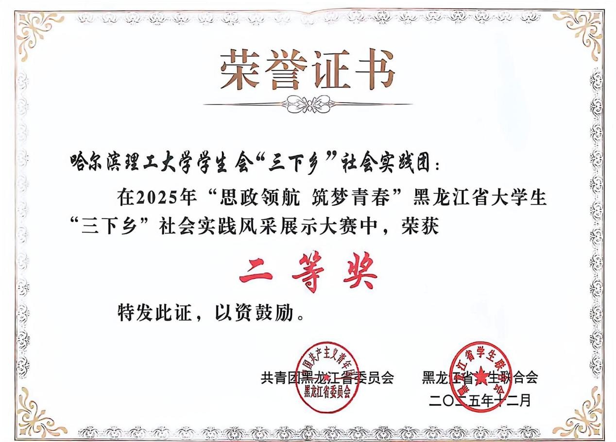 近日,2025年“思政领航 筑梦青春”黑龙江省大学生“三下乡”社会实践风采展示大赛圆满落幕。经过激烈角逐,我校实践团凭借鲜明的育人特色与出色的现场表现,在全省69所高校8000余支团队中脱颖而出,自动化学院“智铸鹤乡·红岸使命”暑期社会实践团荣获大赛一等奖,校学生会“珩星追光”暑期社会实践团荣获大赛二等奖,综合排名位居全省高校前列,充分彰显了哈理工学子扎根实践、挺膺担当的青春风采。